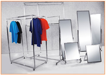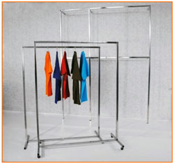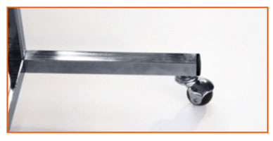 ПРОЧНО – испытания показали – вешала выдерживают более 100 кг. Конструкция жесткая, полностью отсутствуют люфты. Специальные колеса для торгового оборудования повышенной прочности с подшипниками вращения
